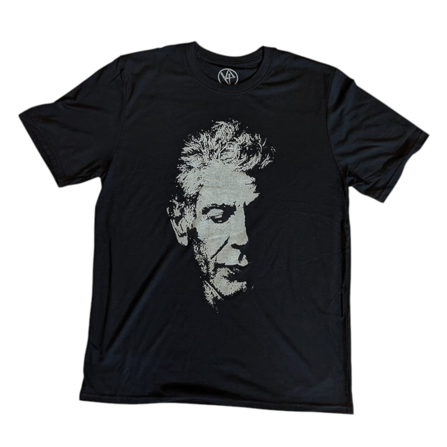 iconic image of the legendary chef, author, documentarian, and all around badass as re-rendered in Kalvin Panthers hand drawn style. single discharge screen print on ultra soft tri blend unisex tee.